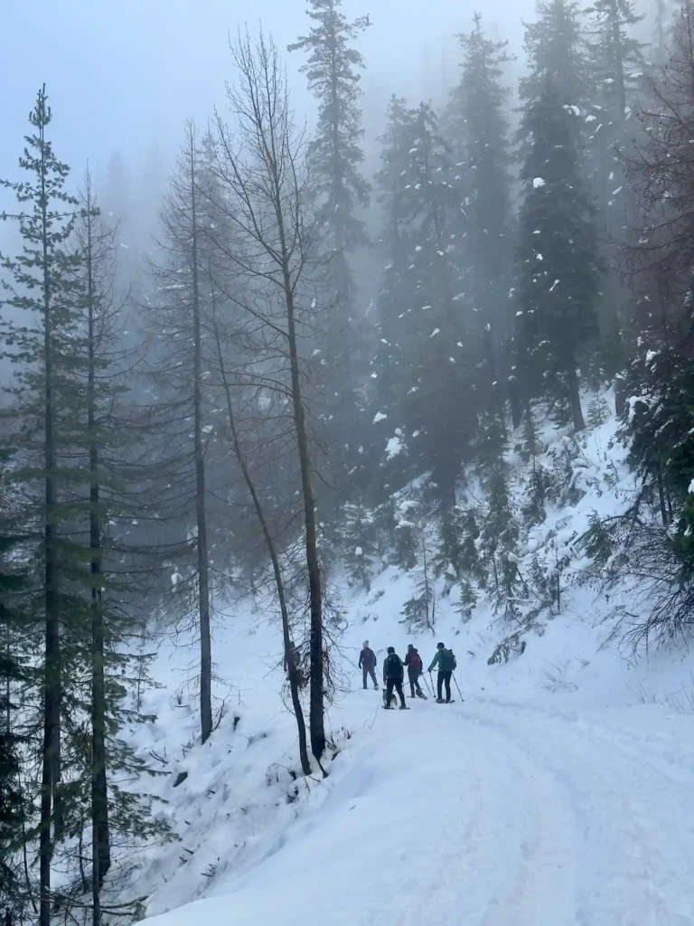 - This snowshoe is perfect for beginners and families as it is so easy to access (parking is literally right off of Highway 97) and navigate (an out and back) with multiple peek-a-boo views of the snowcapped peaks nearby
